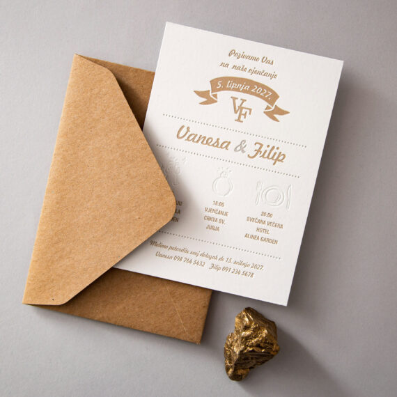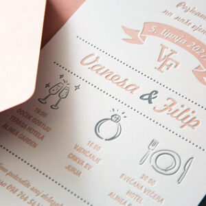 Ova pozivnica izrađena je Soft-Letterpress tehnikom, spojem tradicije klasičnog dubokog tiska i suvremene tehnologije.