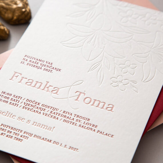 Ova pozivnica izrađena je Soft-Letterpress tehnikom, spojem tradicije klasičnog dubokog tiska i suvremene tehnologije.