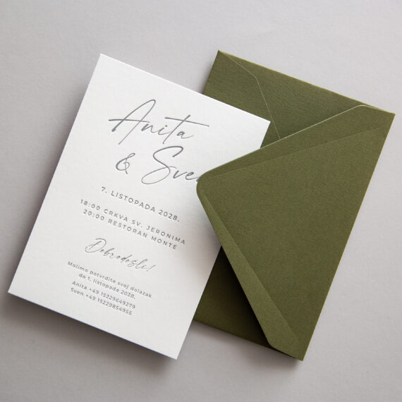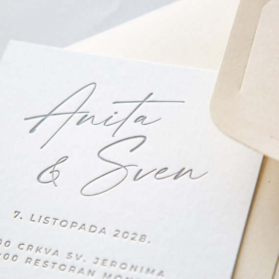 Ova pozivnica izrađena je Soft-Letterpress tehnikom, spojem tradicije klasičnog dubokog tiska i suvremene tehnologije.