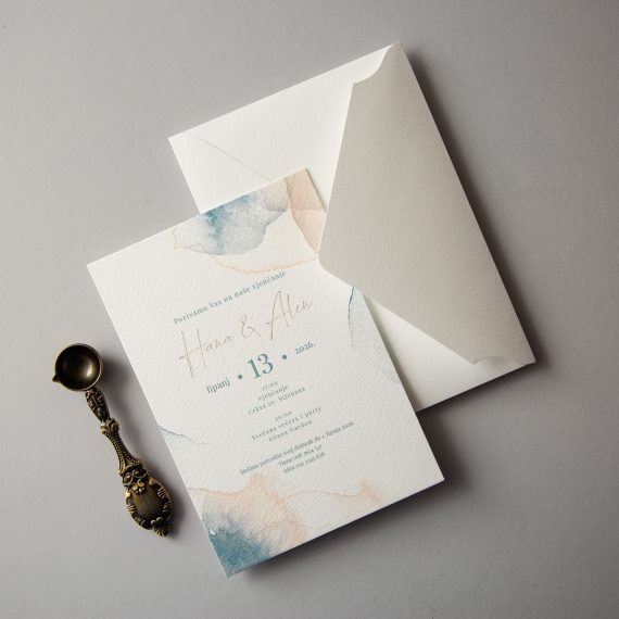 POZIVNICA P59 teksturirani akvarel papir/ varijanta s DIGITALNIM TISKOM (bek tipskog zlatotiska)