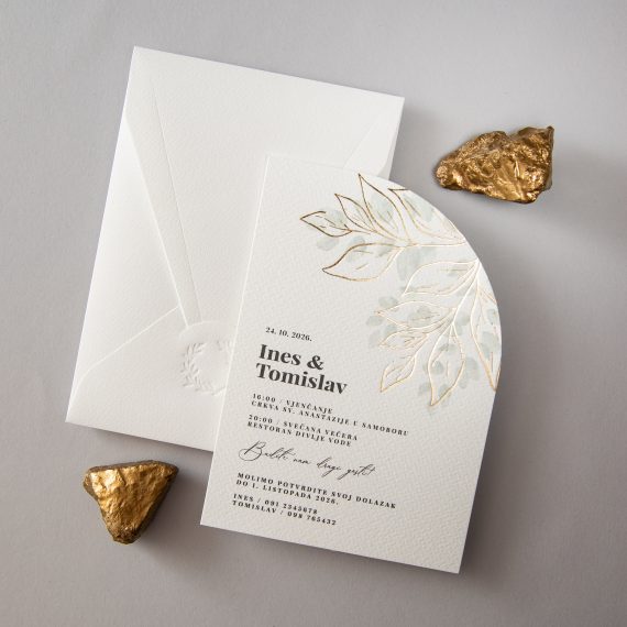 POZIVNICA P91 teksturirani akvarel papir/ DIGITALNI TISAK + ZLATOTISAK